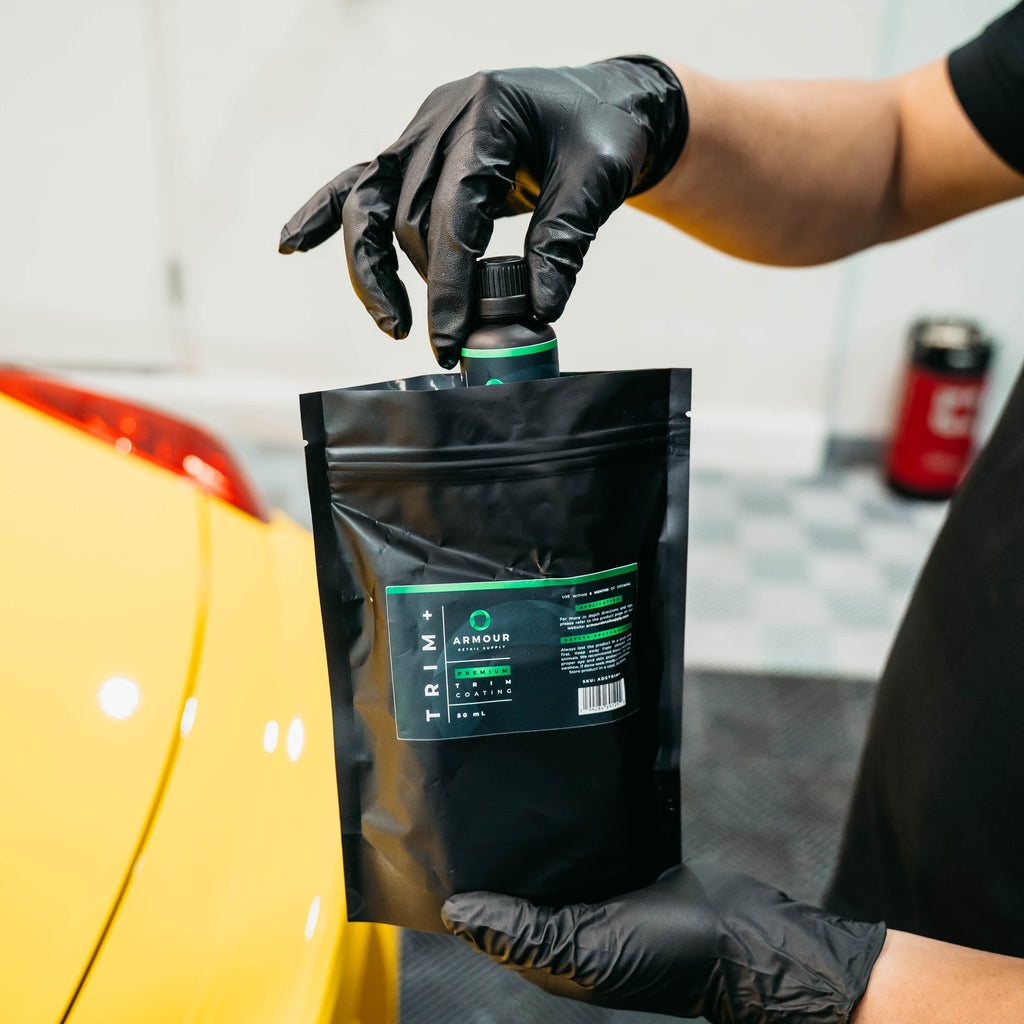 Armour Trim+ is a powerful, black dye-infused trim coating designed to restore, rejuvenate, and protect your vehicle's exterior plastic and rubber surfaces. Ideal for everything from bumpers to wheel wells, Trim+ delivers long-lasting black color and protection with just one easy application, ensuring a like-new appearance that lasts for up to two years.
