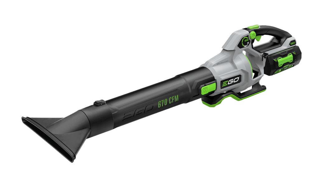 Le souffleur EGO POWER+ 670 CFM délivre des vitesses d’air allant jusqu’à 180 MPH et 670 CFM pour éliminer les feuilles mouillées, l’herbe collée, les pierres et autres débris lourds. Ce souffleur sans fil offre jusqu’à 80 minutes d’autonomie sur une seule charge avec la batterie recommandée 56V 4.0Ah ARC Lithium™. Son cadran de contrôle de vitesse permet d’ajuster le débit d’air de 250 à 530 CFM pour un contrôle optimal. Activez le mode turbo pour venir à bout des débris lourds avec 670 CFM et une force de poussée de 21N. La gâchette à vitesse variable inclut un cadran de régulateur pour un flux d’air constant. Ce souffleur est équipé d’un moteur sans balais haute efficacité offrant de longues durées de fonctionnement, de faibles vibrations et une durée de vie prolongée du moteur. L’ingénierie du ventilateur à turbine, inspirée des technologies aéronautiques avancées, performe mieux que les souffleurs à essence haut de gamme. Les buses incluses, effilées et évasées, facilitent le dégagement des débris dans toutes les conditions, et la construction résistante aux intempéries IPX4 protège contre les éléments. Ce souffleur électrique silencieux, léger et compact fait le travail plus rapidement et plus silencieusement qu’un modèle à essence. Découvrez Power Beyond Belief™ sans bruit, tracas ni fumée.