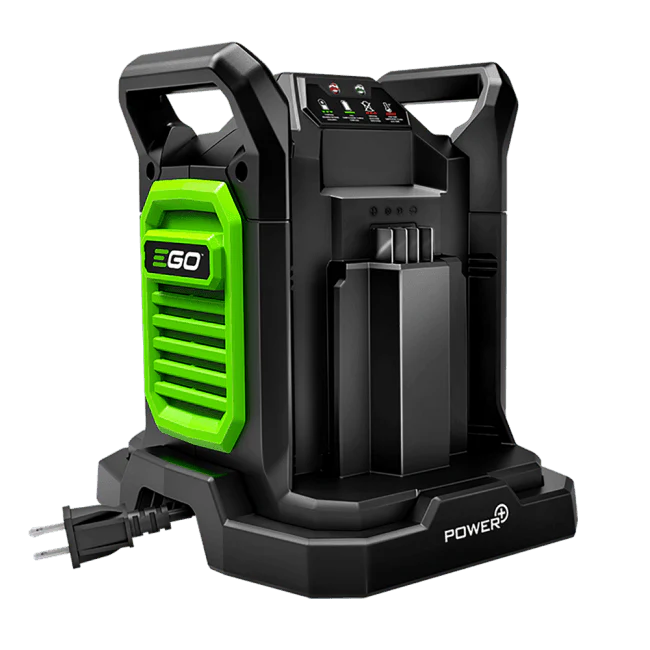 Reprenez le travail plus rapidement avec le nouveau chargeur double port EGO 56-Volt Lithium-Ion. Rechargez simultanément deux batteries EGO de n'importe quelle taille. Les deux ports surveillent et contrôlent chaque cellule du pack de batterie pour réguler la température et garantir une durée de vie maximale. Le système de ventilation active et la communication avancée avec la batterie permettent une charge rapide sans surchauffe. Le système à double port assure un temps d’arrêt minimal avec n’importe quelle batterie de la plateforme EGO.