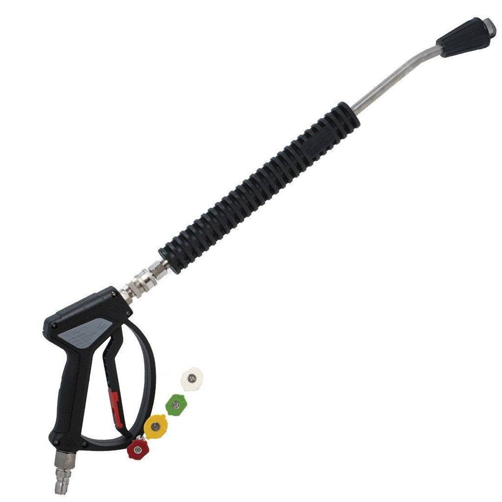 1. Réduit l'encombrement et permet plus de maniabilité et de polyvalence dans le processus de lavage ; les pistolets de lavage à pression standard fournis avec la plupart des machines sont longs, encombrants et ne disposent pas des raccords rapides appropriés pour accepter correctement des accessoires comme les canons à mousse ou différents types de buses.