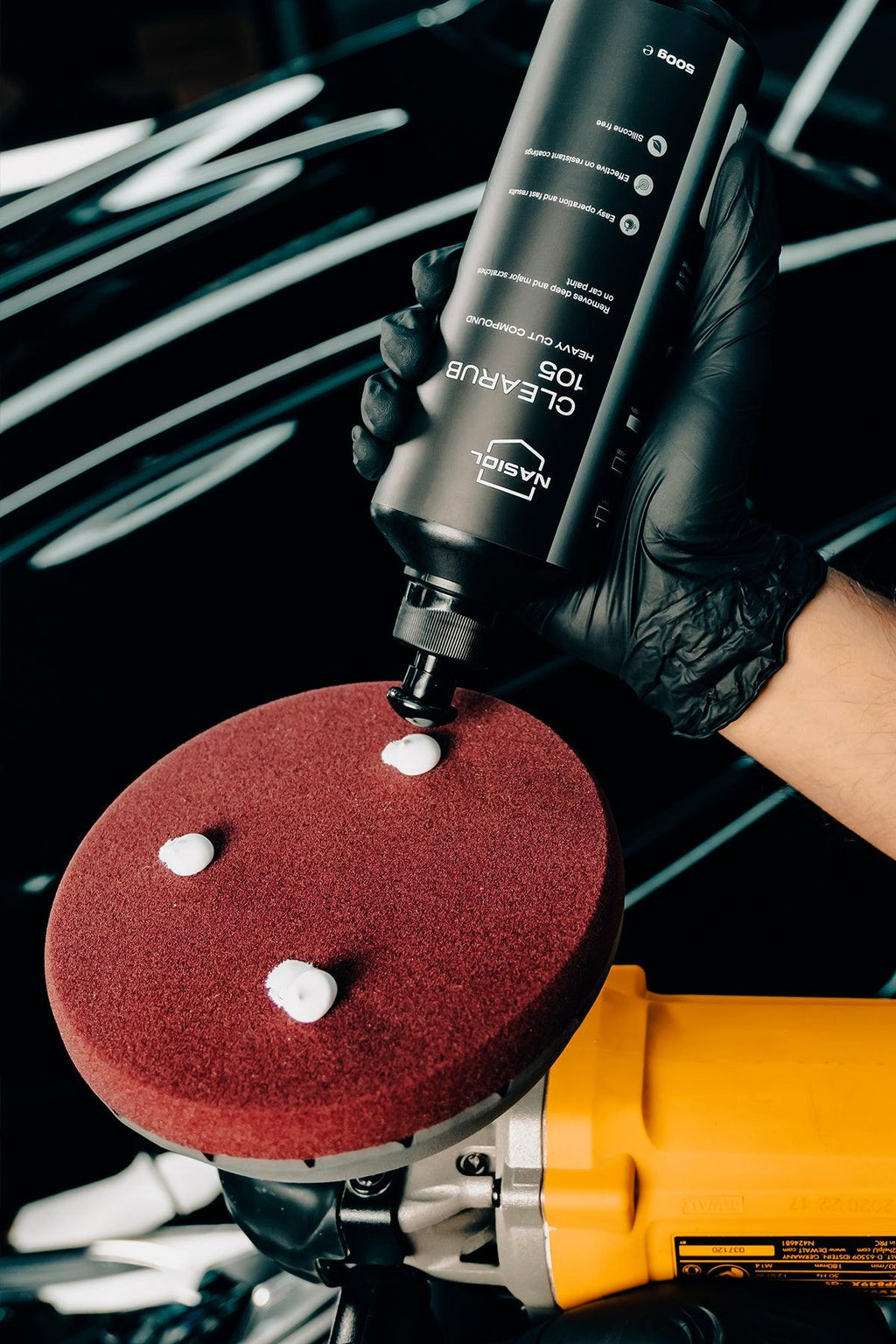 Préparez la surface de la carrosserie d'une voiture pour le traitement au revêtement céramique en éliminant les rayures importantes. Nasiol CleaRub 105 est un composé à coupe lourde destiné à rectifier les peintures dégradées. CleaRub 105 est également le choix idéal pour les travaux de finition sur des revêtements résistants.