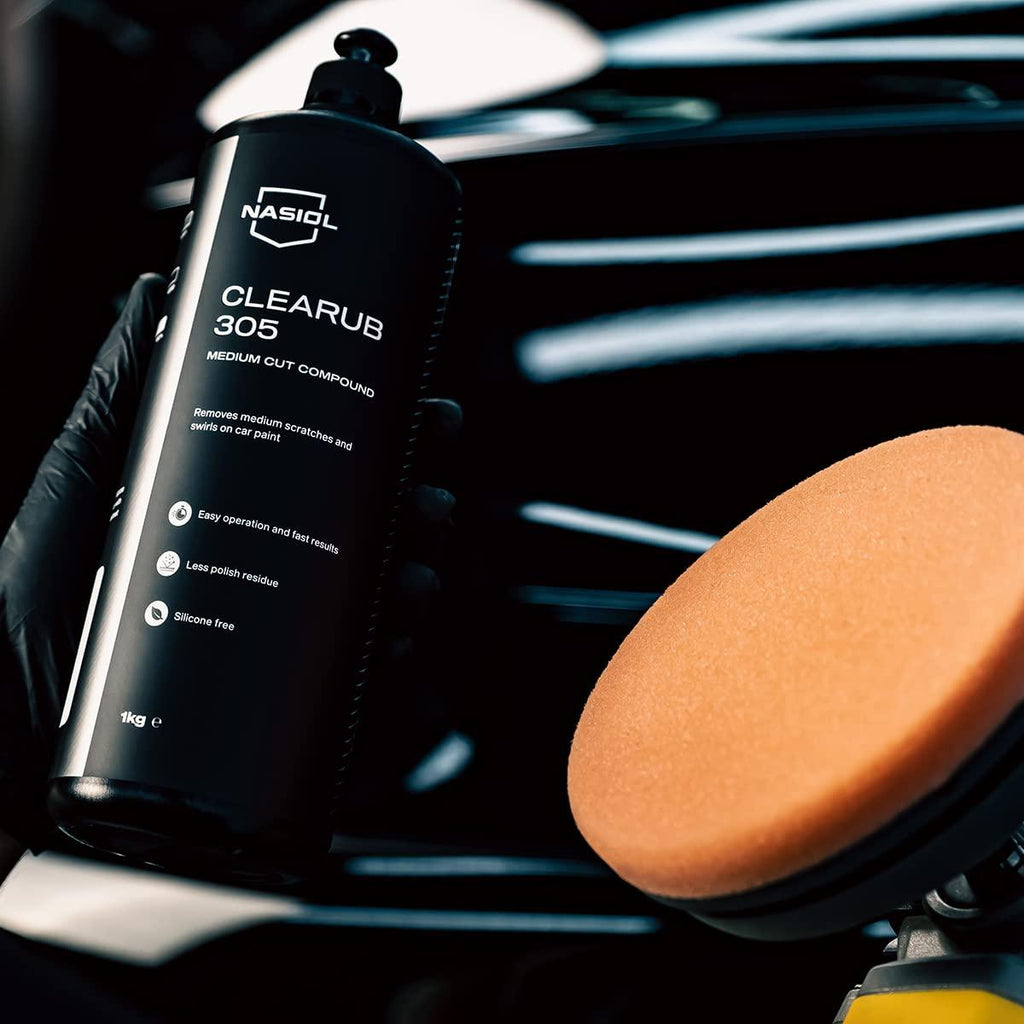 Préparez la surface de la carrosserie d'une voiture pour un traitement de revêtement céramique en éliminant les rayures moyennes. Nasiol CleaRub 305 est formulé pour se fondre avec les rayures afin de les faire disparaître efficacement. CleaRub 305 est également le choix idéal pour les travaux de finition sur les revêtements supérieurs résistants et les cires.