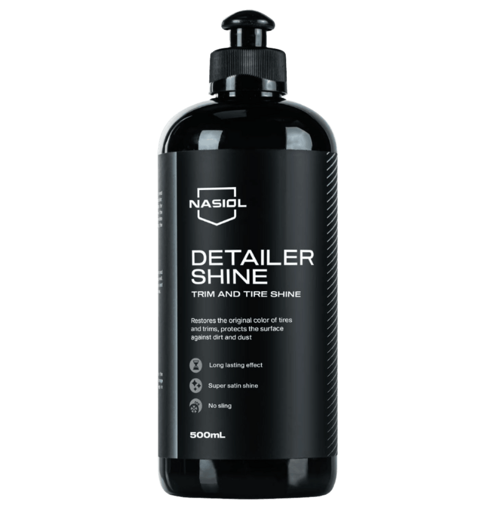 Améliorez votre routine de detailing avec Nasiol DetailerShine — une solution puissante pour obtenir des pneus et garnitures propres, protégés et brillants sans effort.