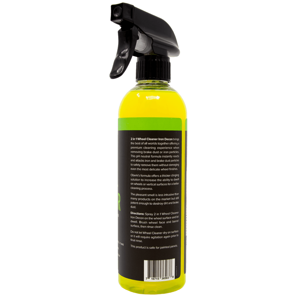 Oberk 2 en 1 Nettoyant pour roues est neutre en pH, utilisant une formule chimique avancée pour éliminer les particules de fer et l’excès de poussière de frein sans risque d’endommager les finitions de jantes les plus délicates.
