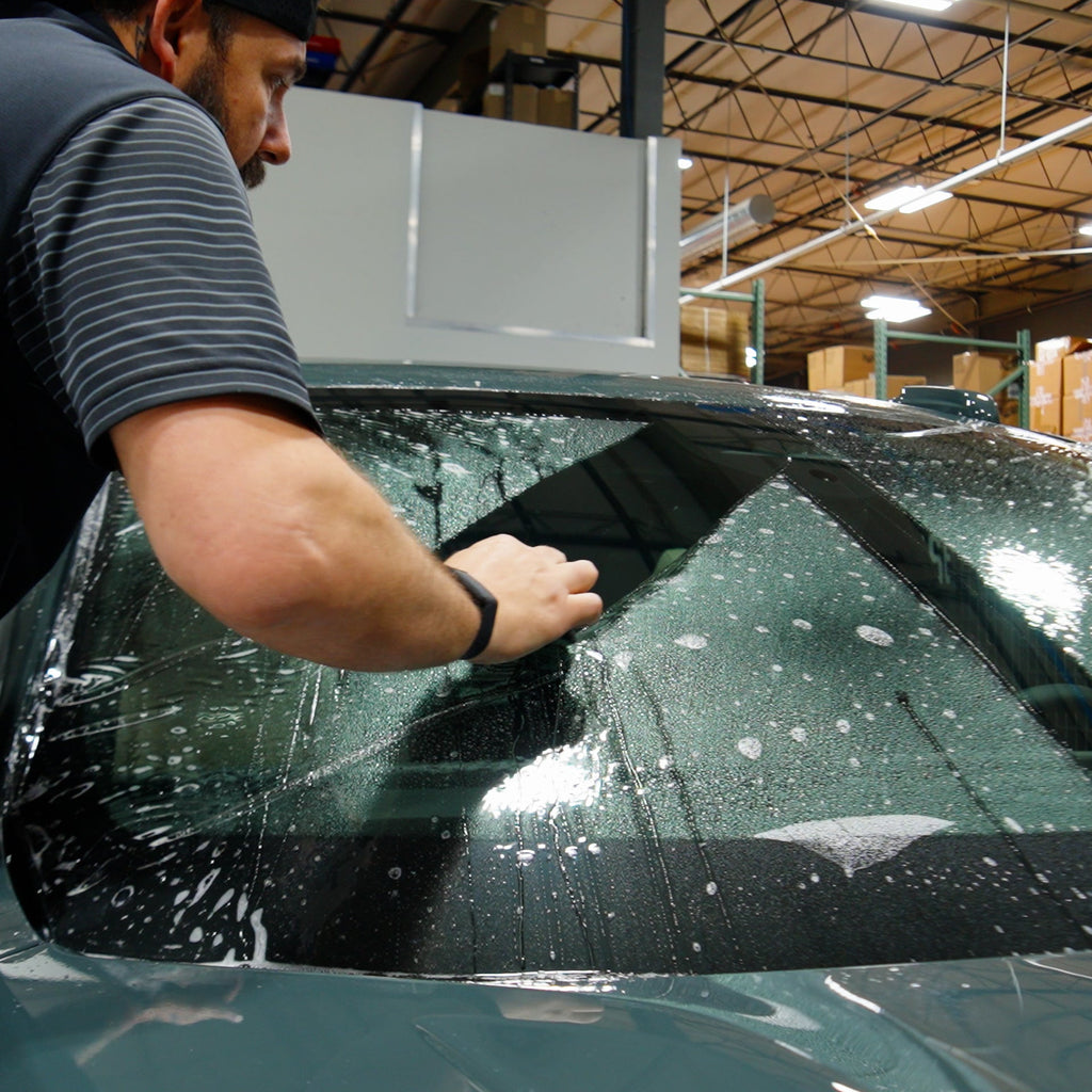 Step 5: Remove the liner to expose the adhesive and tack the film in the center of the windshield.