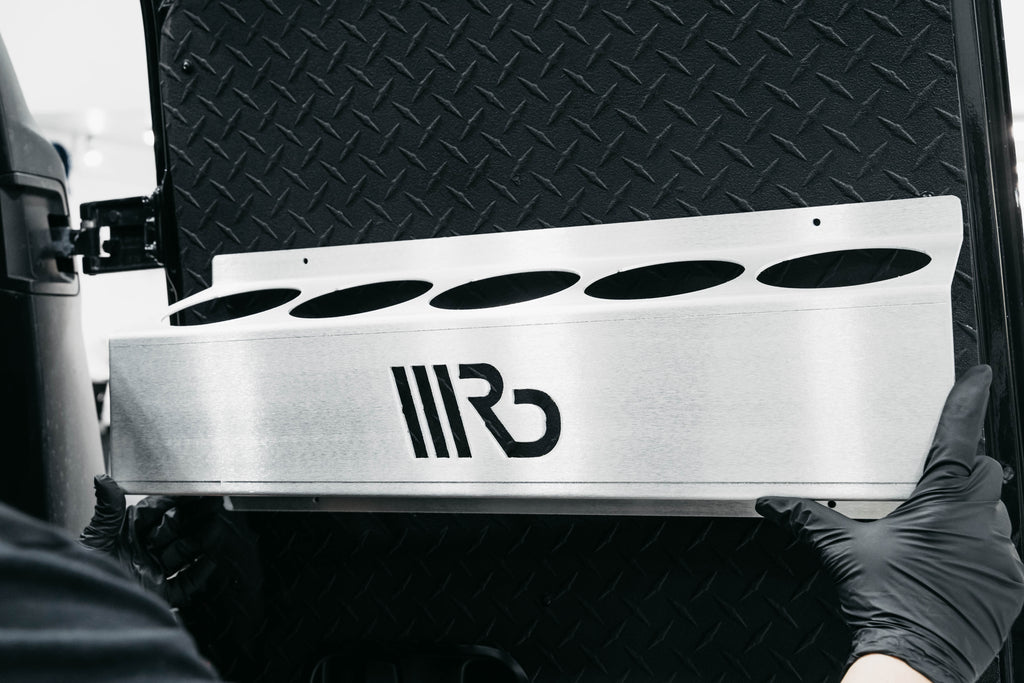 The Aluminum 5-Bottle Holder is a durable and space-saving storage solution designed specifically for iK brand spray bottles. Whether in a professional detailing shop or a mobile detailing van, this sturdy holder keeps your bottles secure, accessible, and neatly organized. Made from high-quality aluminum, it ensures longevity while helping streamline your detailing workflow.