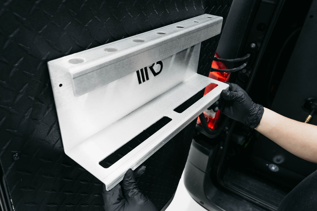 The Ralda's Brush & Bottle Organizer Rack is a durable aluminum storage solution designed to keep your detailing brushes and bottles neatly organized. Whether you're a professional detailer or a garage enthusiast, this rack helps maximize workspace efficiency and accessibility, ensuring your tools are always within reach. It comes scuffed and ready to paint, allowing you to customize it to match your workspace aesthetic.