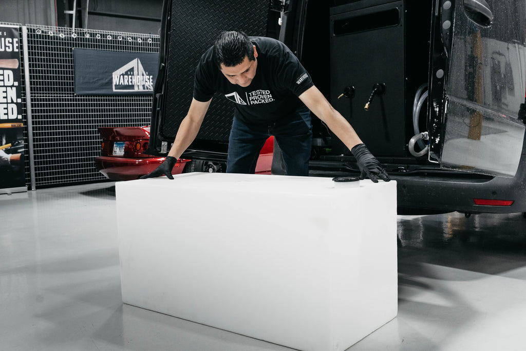 Step 1: Secure the Raldas 80-Gallon Water Tank in your mobile detailing van, truck, or trailer.