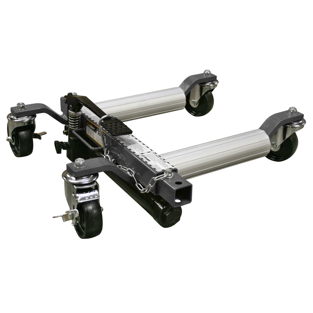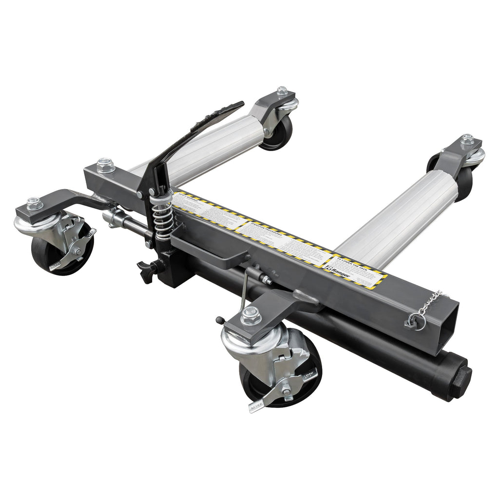 Ces chariots robustes disposent d'une pompe à pied hydraulique à action rapide pour soulever toute voiture ou petit camion en quelques secondes, offrant une mobilité instantanée dans toutes les directions. Une goupille de verrouillage multi-positions sécurise la charge une fois l'unité élevée à la hauteur requise. Les rouleaux en aluminium brossé renforcé et antidérapant garantissent un support solide et stable pour le pneu, et un centre de gravité bas les rend sûrs et stables pendant l'utilisation.