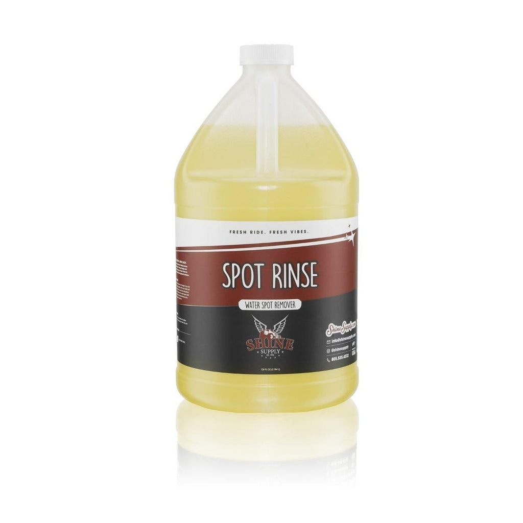 - Spot Rinse fonctionne très bien sur la fibre de verre, le gel coat ou les surfaces peintes.