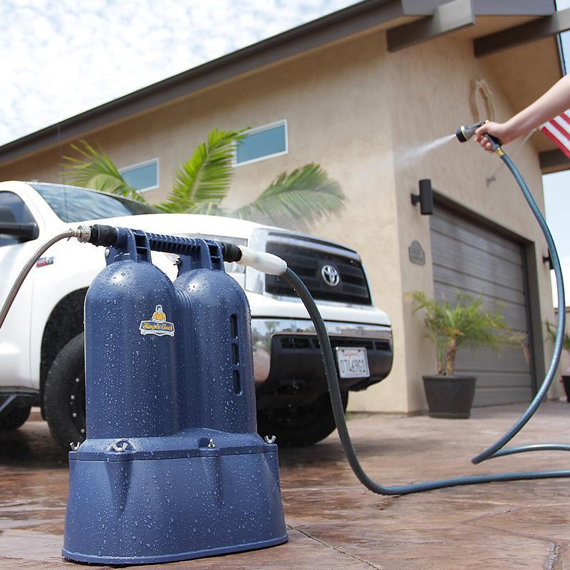 Il suffit de sortir le Simple Chuck de la boîte, de fixer le régulateur de pression à votre robinet (IMPORTANT : le Simple Chuck a une limite de pression de 70 psi et vous devez utiliser le régulateur si vous ne connaissez pas la pression de votre alimentation), de raccorder le tuyau inoxydable fourni à votre robinet ou au régulateur, puis de connecter votre tuyau d’arrosage (ou votre nettoyeur haute pression !) à la sortie et de laver à volonté. Après utilisation, vous devez couper l’alimentation en eau et détacher ou « presser la gâchette » pour dépressuriser le système.