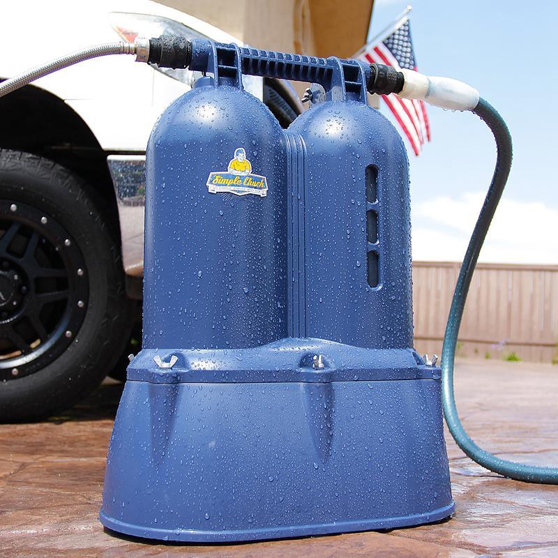 Le Simple Chuck contient presque un demi-pied cube de média filtrant déionisé et fournit environ 400 gallons d’eau parfaitement propre qui vous permet de Laver, Rincer et Partir® sans craindre les redoutables taches d’eau. Le système est monté sur roulettes pour un déplacement facile autour de votre espace de travail et, avec seulement 58 cm de hauteur, il tient dans presque toutes les baies de camping-car et sous l’établi.