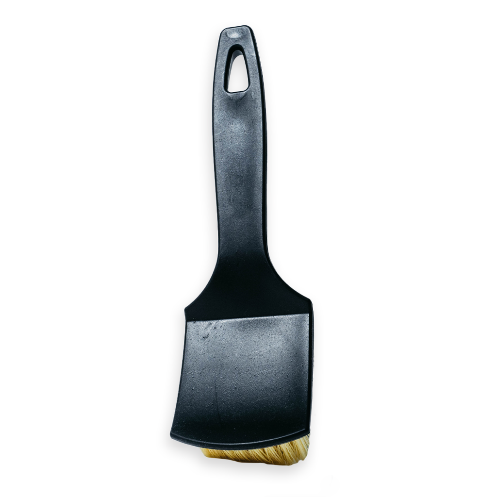 Des poils en nylon densément serrés et fixés dans un bloc de mousse. Les poils sont ondulés pour plus de résistance. Idéal pour nettoyer les pneus à flancs blancs et pour frotter les tapis.